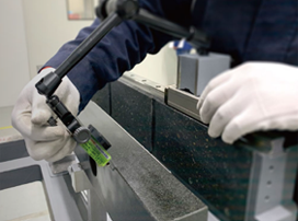 礦物鑄件又稱“人造大理石”“樹脂混凝土”,是用天然石碎料/鵝卵石、黃砂等為骨料,改性環氧樹脂等為膠凝材料,加入部分填料和外加劑經過混合攪拌、振動密實而形成的一種新型高分子復合材料。其具有的復雜外型的成型能力和整合能力,高精度,良好的吸震性、熱穩定性及耐腐蝕性等優勢。